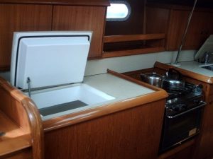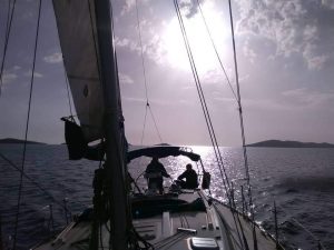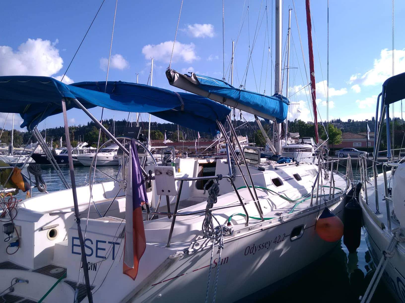 Our Eset is a Jeanneau Sun Odyssey 42.2, well equipped for blue-water cruising, including a full complement of storm sails, navtex, and radar. She is available for sailing training and sailing holidays.