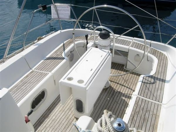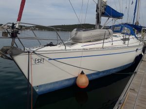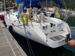 Eset has a single rudder, furling Genoa, a main slab reefing sail with three reefs, and storm sail. A spinnaker is available on request. She comes with Raymarine GPS, wind meter, depth gauge, speedometer, autopilot, radar, navtex, VHF with DSC, and EPIRB, life preserver, safety harnesses, stern spray hood, swim platform, and separate leisure and engine batteries. She comes with a new dinghy (2018) and outboard engine available on request.