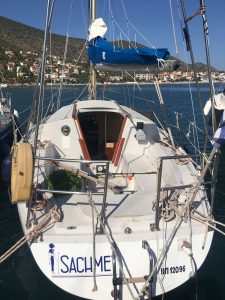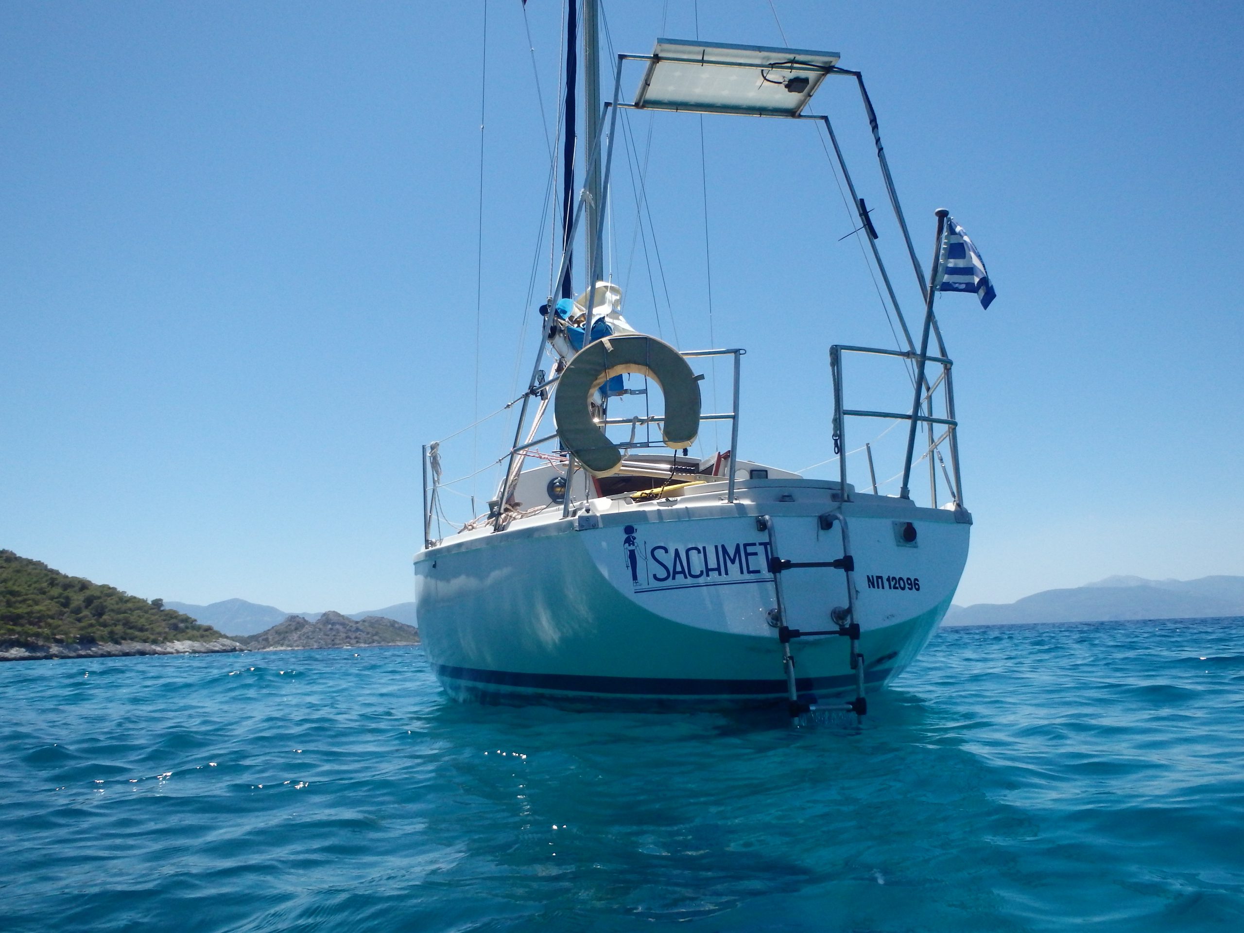 Just as the Egyptian godess Sachmet always wins, as it turns out, so does our boat. Sachmet is the first yacht of our mini fleet – I brought it from Lelystad in the Netherlands to Greece in the summer of 2008, where I sailed her privately. See my Diaries of sailing Sachmet for some of her earlier adventures.
